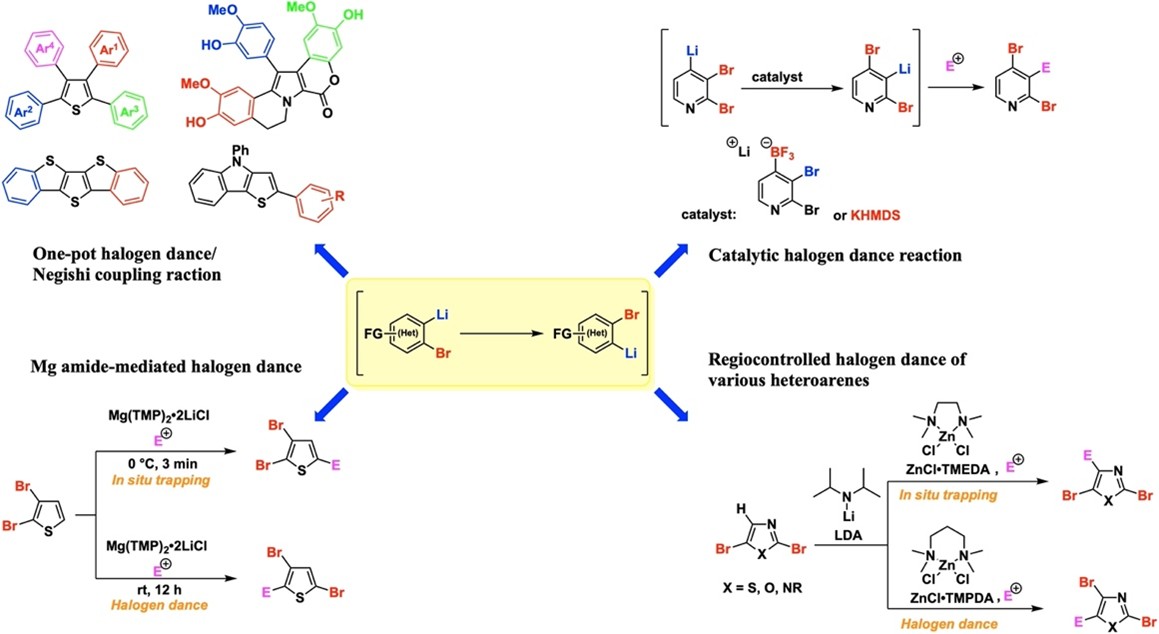 膜材料に機能を付与するための官能基化ヘテロ芳香族化合物を幅広く合成する手法に取り組んでいます。具体的には、「ハロゲンダンス」と呼ばれる、官能基を導入するための起点となるハロゲン原子を移動させながら一度に二箇所を分子変換する反応を開発しています。