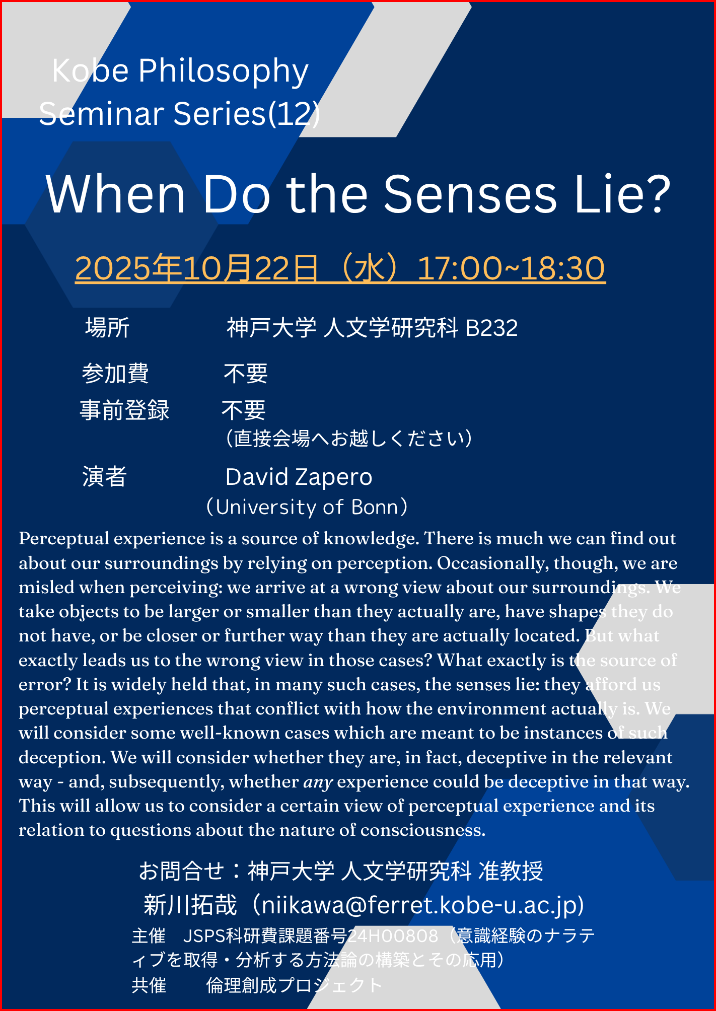 Kobe Philosophy Seminar Series (12):「When Do the Senses Lie?」