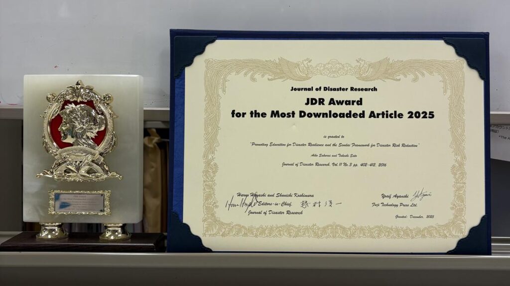 Aiko Sakurai, Takeshi Sato. (2016) "Promoting Education for Disaster Resilience and the Sendai Framework for Disaster Risk Reduction." Journal of Disaster Research, 11(3), pp.402-412.